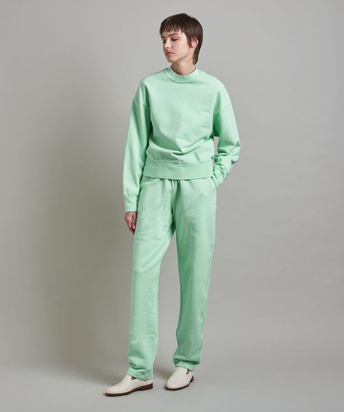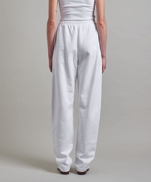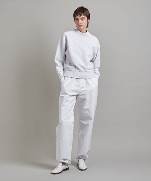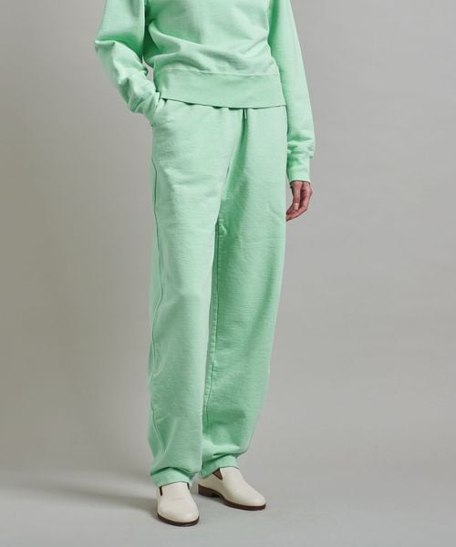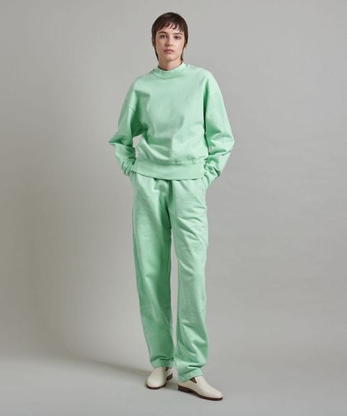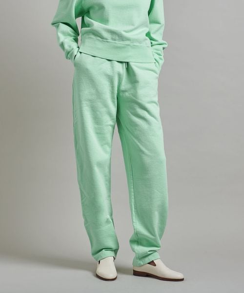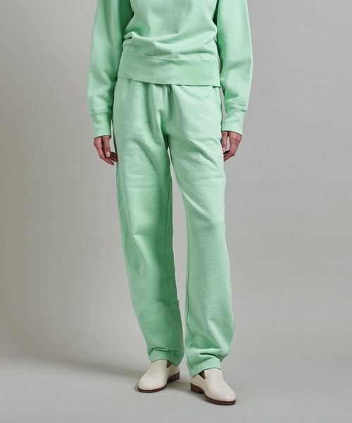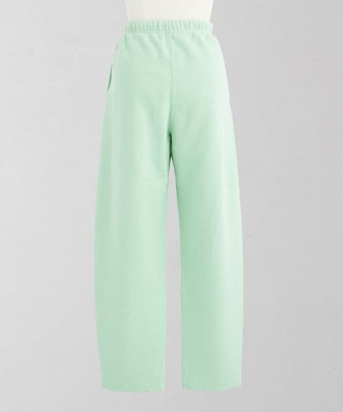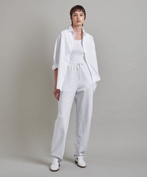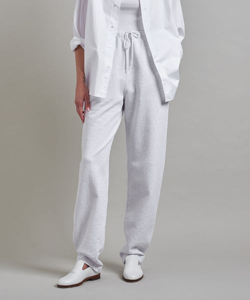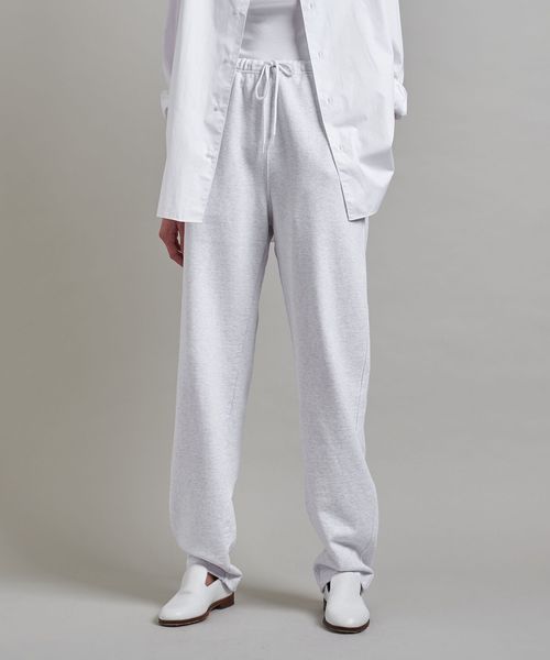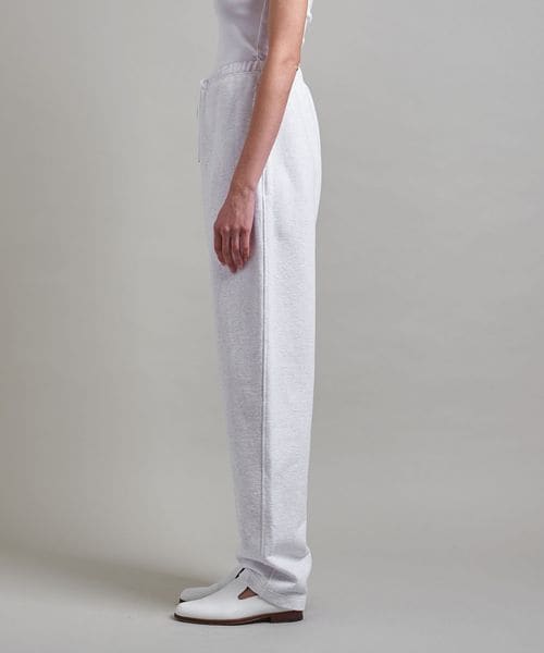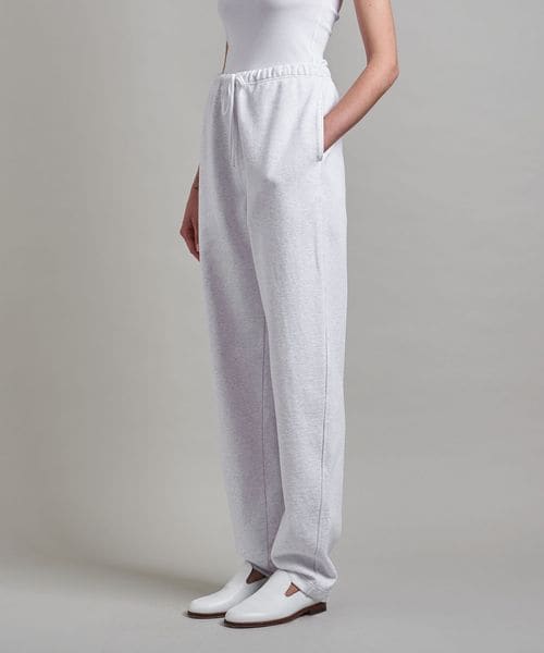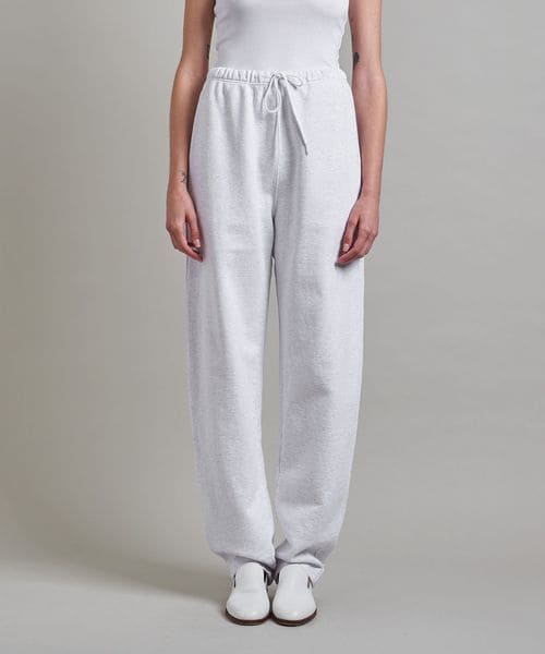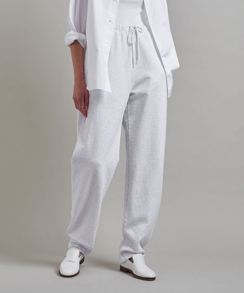 すっきりとしたウエストから弧を描くようにボリュームをもたせたマニッシュな雰囲気のスウェットパンツ。