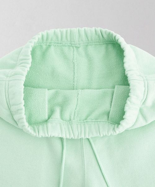 程よい厚みとふくらみのあるドライタッチな裏毛を製品洗いで度目をつめております。