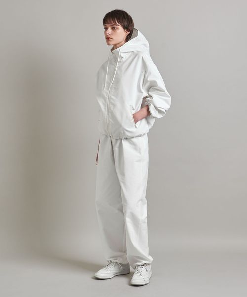 同素材のセットアップはもちろん、シャツやニットにあわせてきれいめな着こなしもおすすめです。