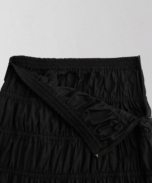 くしゅっとしたギャザーが特徴のフィット感のあるフレアスカート。