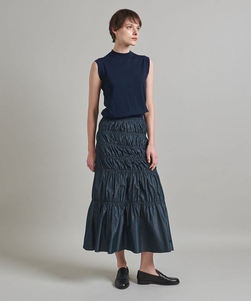コンパクトなトップスとあわせるとスカートのシルエットが引き立ちます。