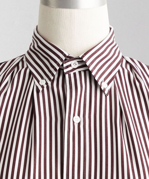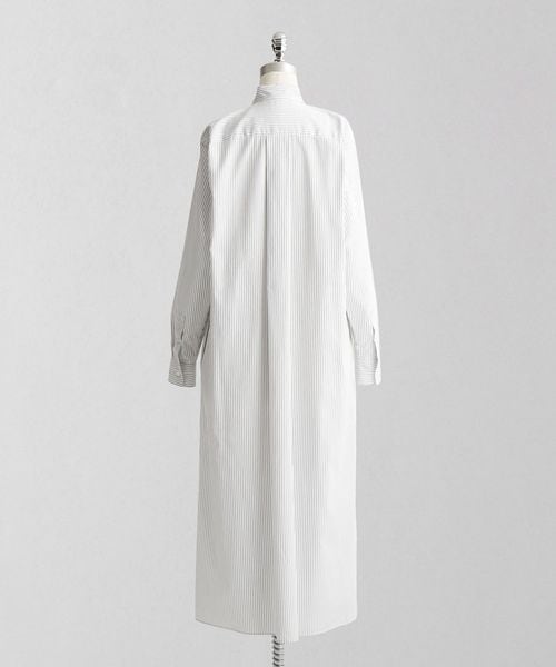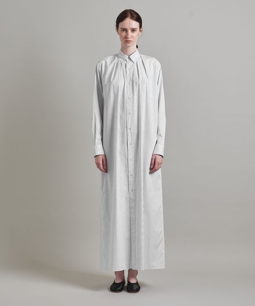 襟元のタックでボリュームを持たせたテントシルエットのシャツドレス。