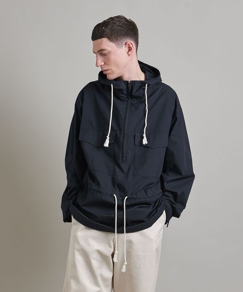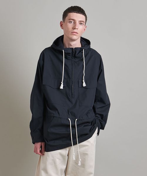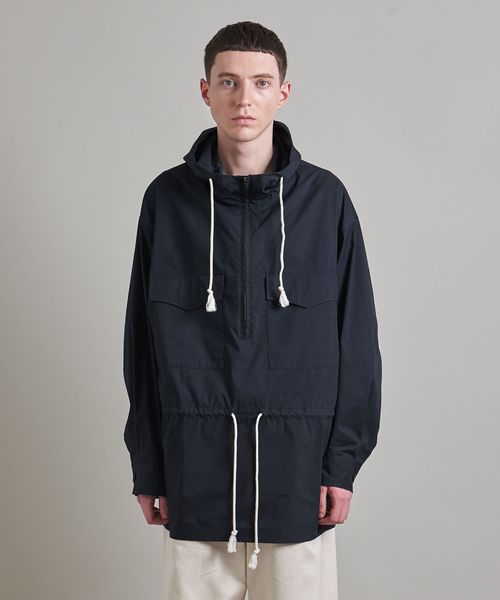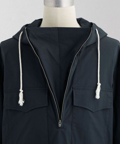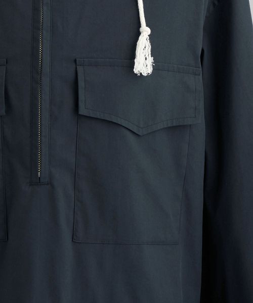 アルパインスモックのようなディテールをすっきりと仕上げたフードシャツ