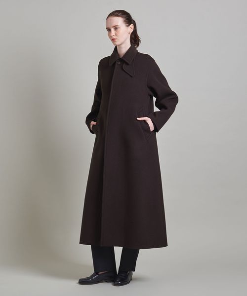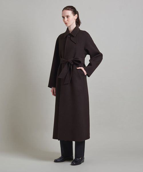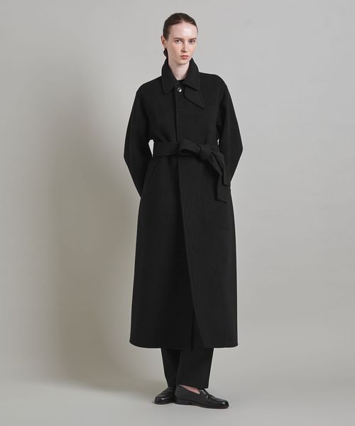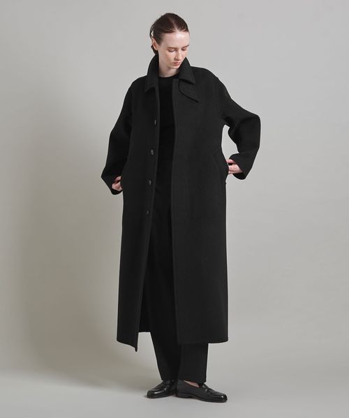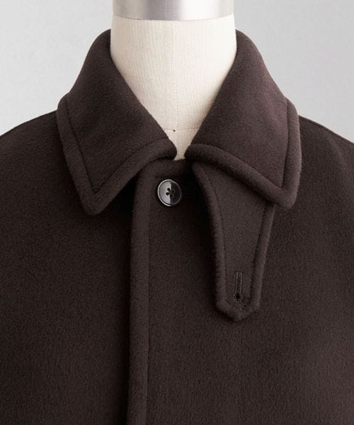 リバー縫製で素材の柔らかさを活かし、重すぎず軽すぎない目付にこだわってお作りしたロングコート。