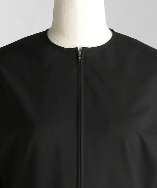フロントのジップを少し下ろして抜け感をプラスした着こなしもおすすめ。
