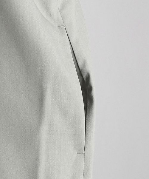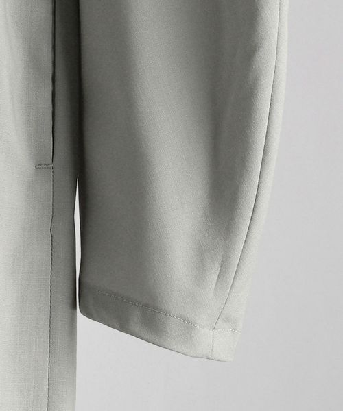 軽やかでドレープ感もあるサラッとしたタッチの素材にペーパープレス加工で艶感をプラスした梳毛素材。