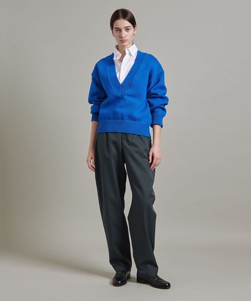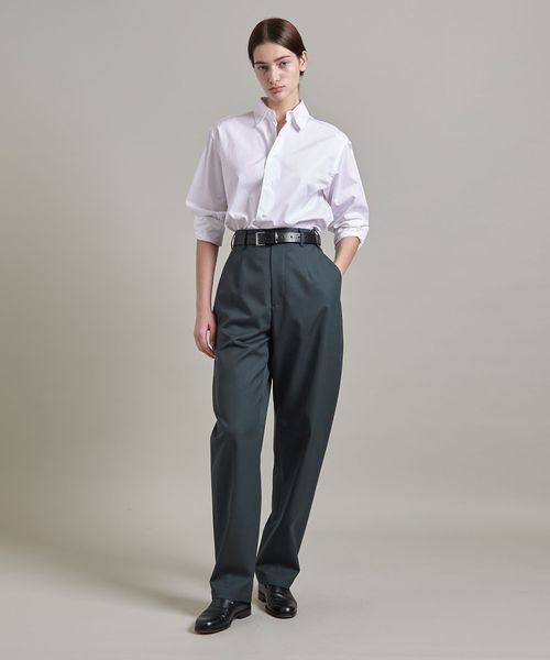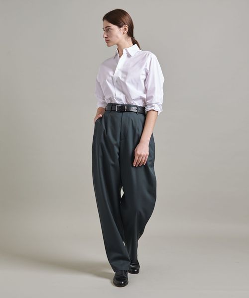 合わせやすく、動きやすい、<LOEFF>定番のボンタントラウザーは、カーブのきいた画になるシルエットと動きに対してデザインされている点がポイントです。