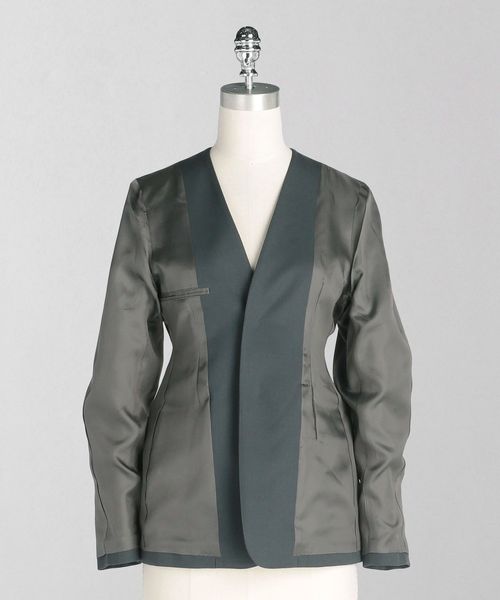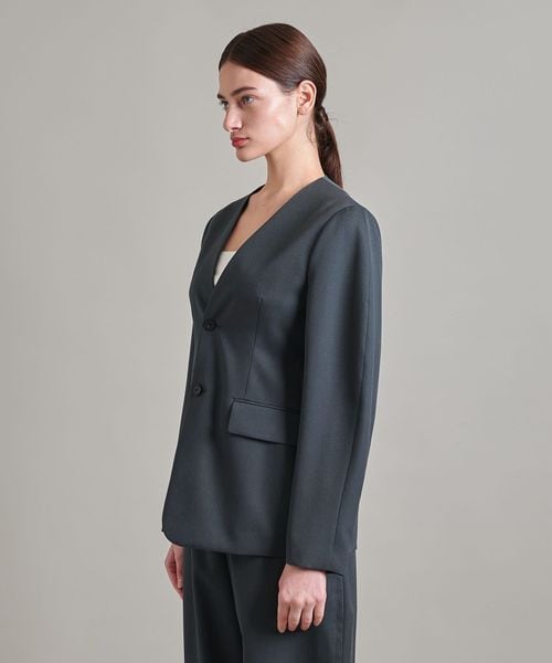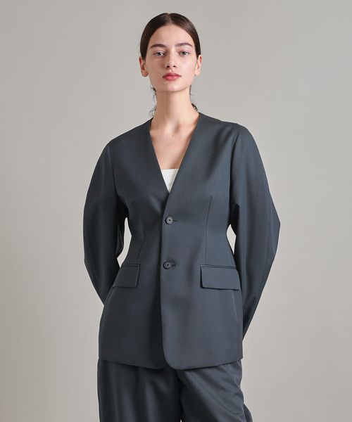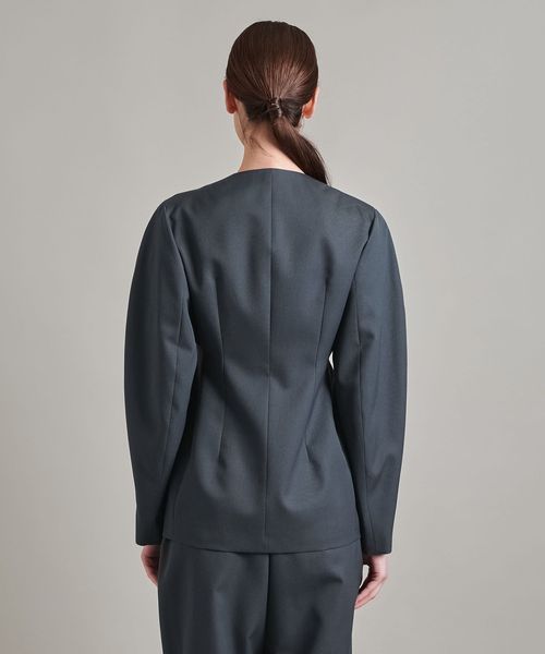 <LOEFF>ウール ギャバ カーブ ノーカラー ジャケット