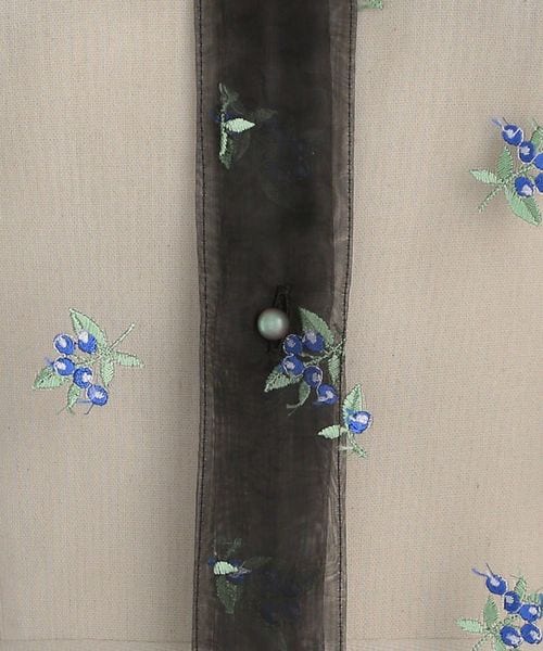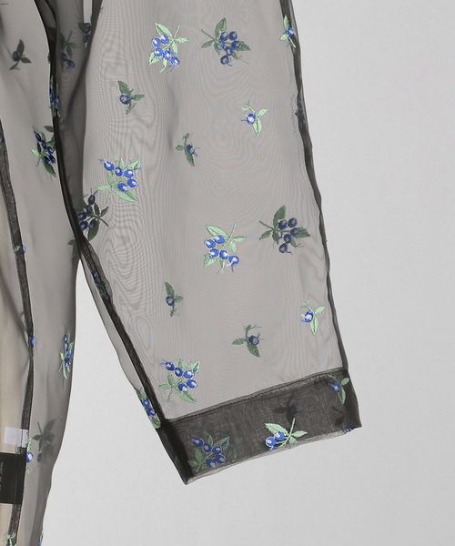 クリアな質感のグラスオーガンジーにふくらみのあるブルーベリー柄を刺繍した、<LOEFF>オリジナルのシアーエンブロイダリーファブリック。