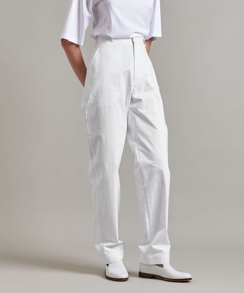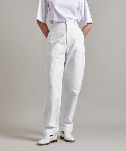 <LOEFF>定番のボンタンシルエットで、素材のハリ感を考慮しデイリーに着まわしやすい程よいカーブシルエットに仕上げました。