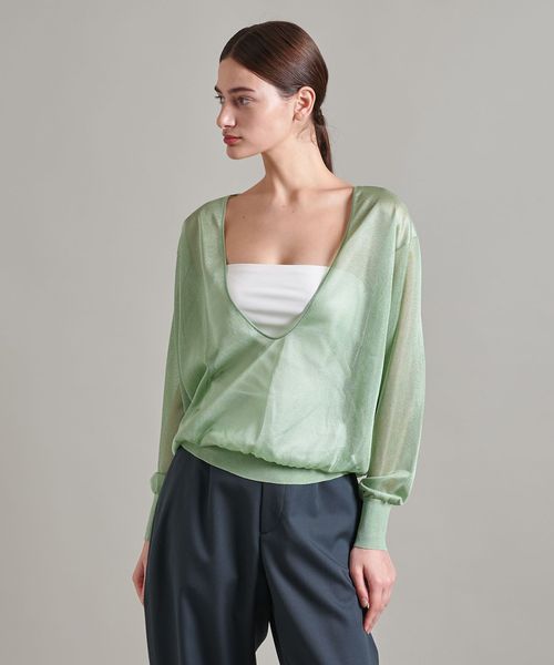 繊細なシアー感と艶感が女性らしさを後押しするニット