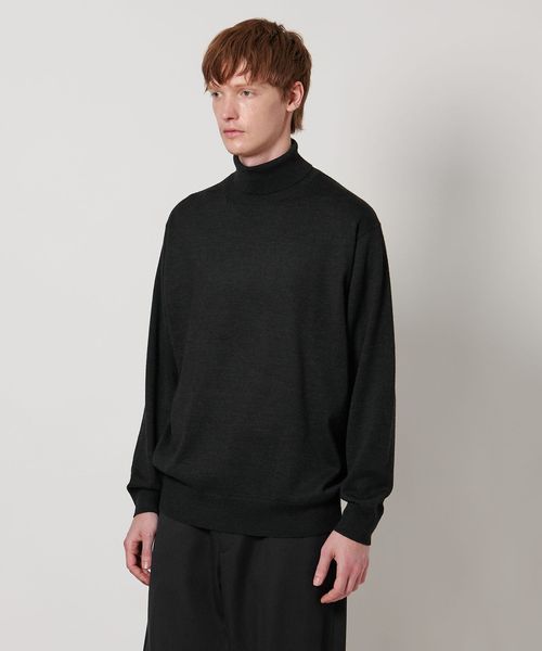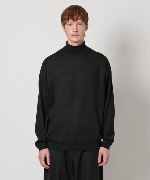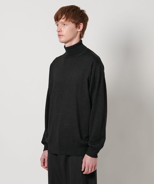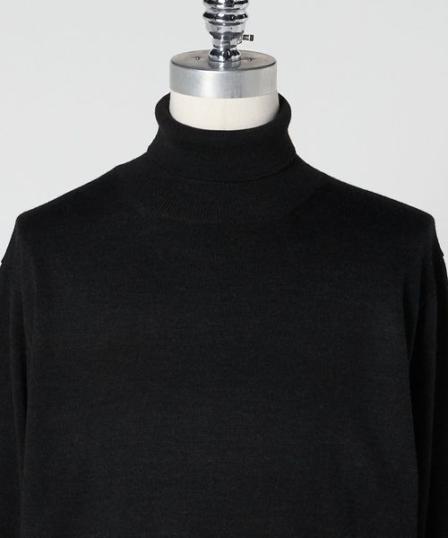 編み続きのタートルネックが首元にやさしくフィットし、快適な着心地を叶えます。