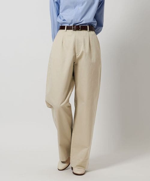 ゆったりとしたワイドテーパードシルエットに、脇のラインにわずかなカーブを加えることで、ニュアンスのある立体的なフォルムを実現しています。
