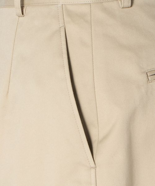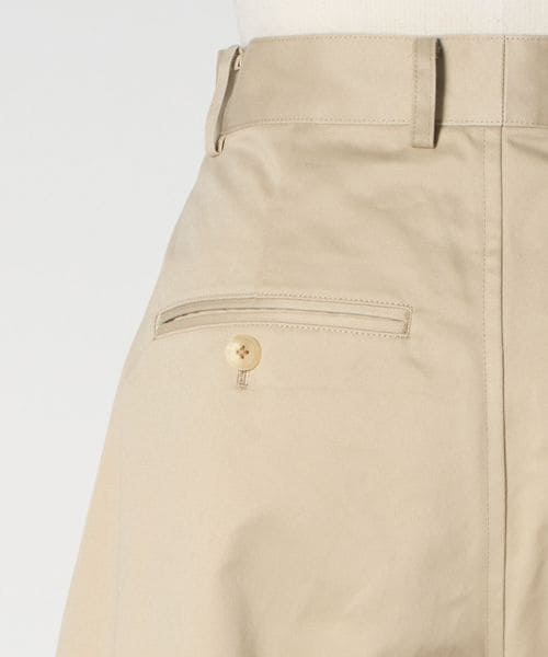 ディテールをそぎ落としたシンプルなデザインが、洗練された印象を与えるチノパンツ。