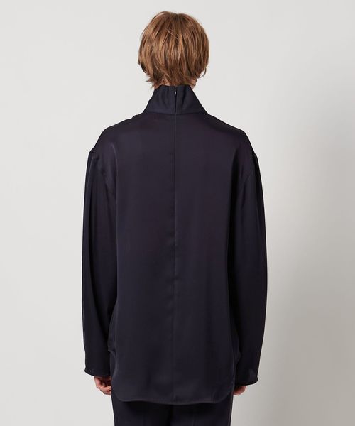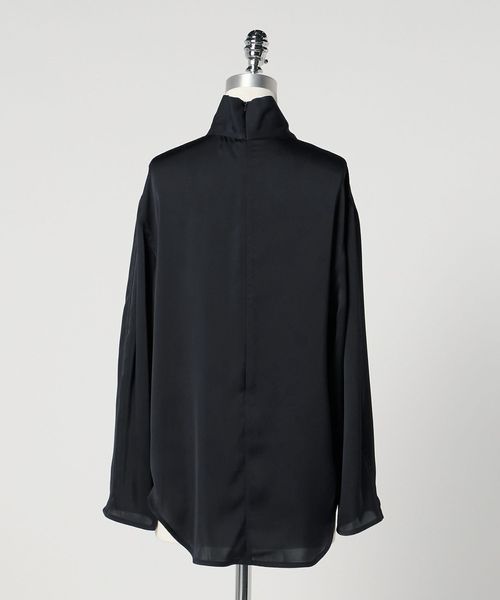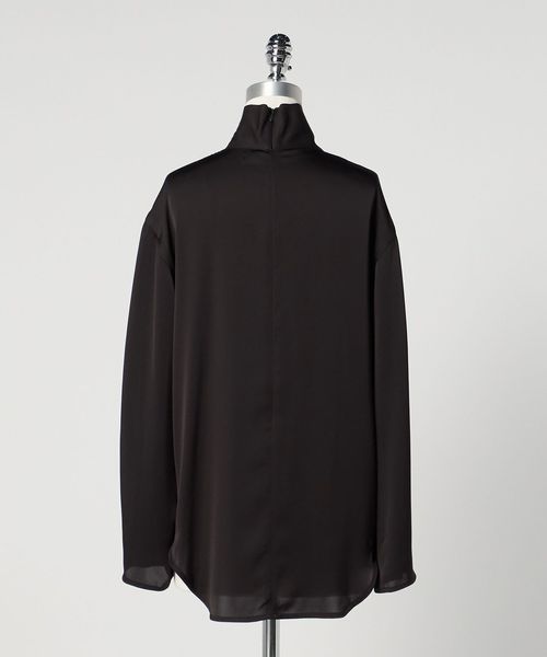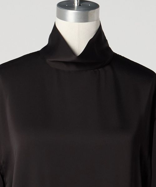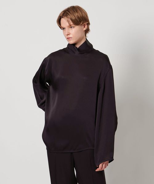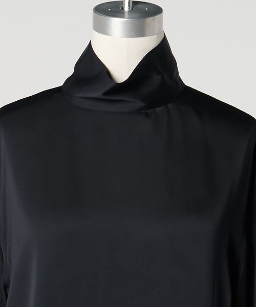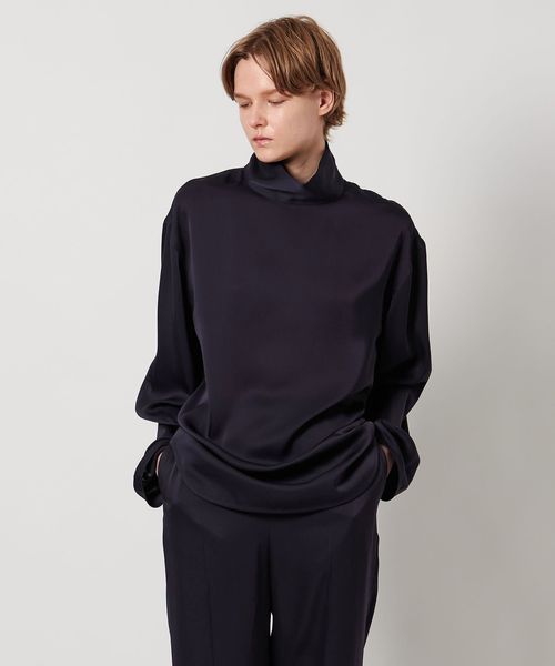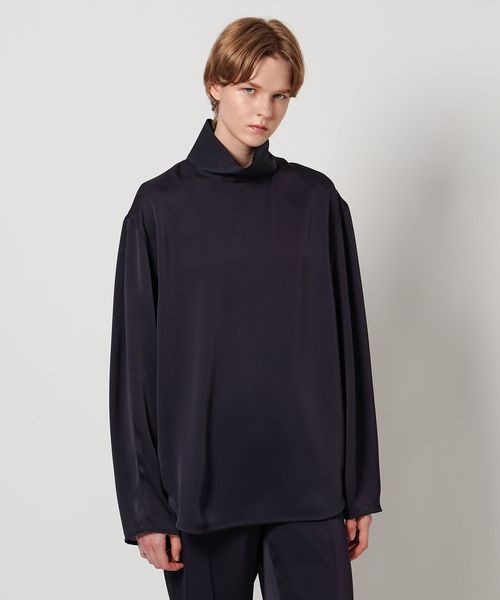 ゆとりのあるハイネックが印象的なプルオーバーブラウス。