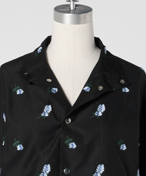群馬県桐生で打ち込みよく織り上げ、白い花柄をカットジャガードで繊細に表現しています。