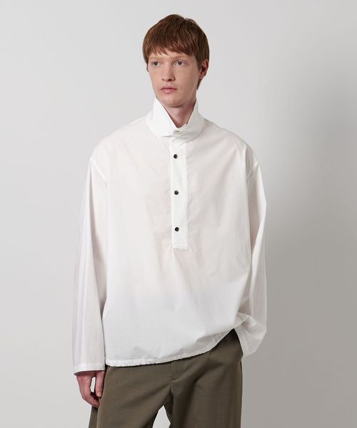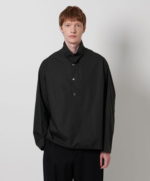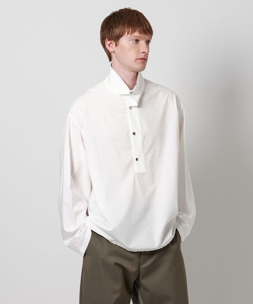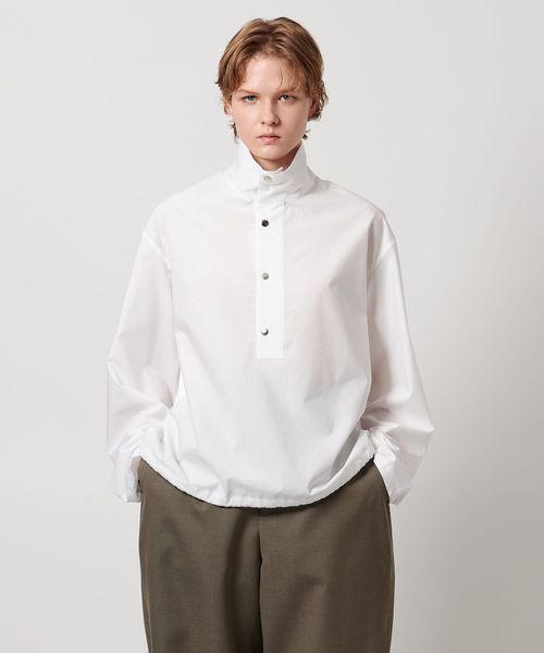 スクールジャージを思わせる、程よくゆったりとしたボックスシルエットのスナップシャツ。
