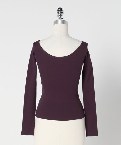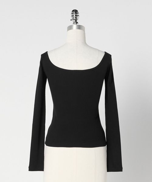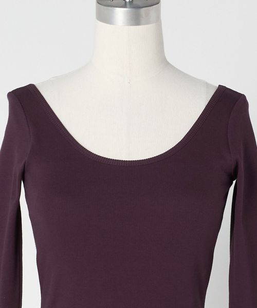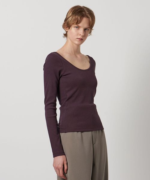 前後に大きく開いたラウンドネックが、すっきりとした印象を演出。