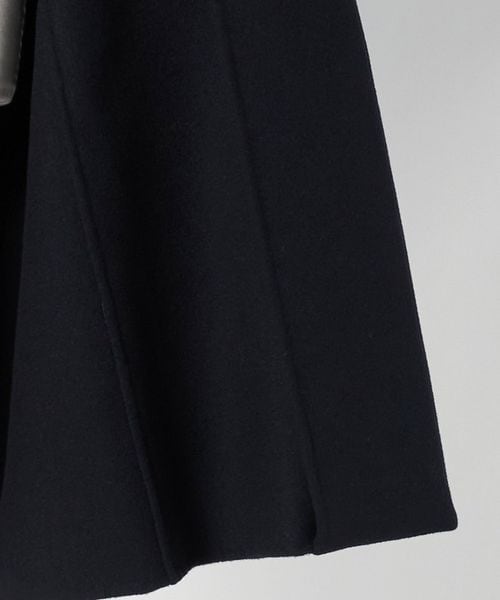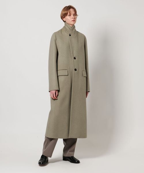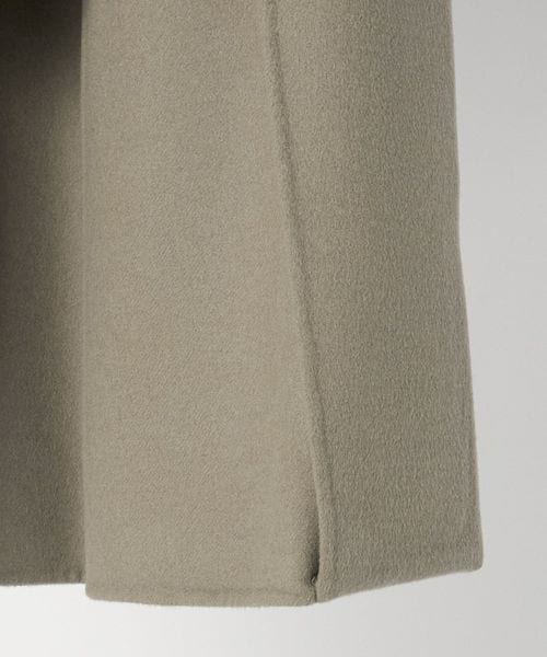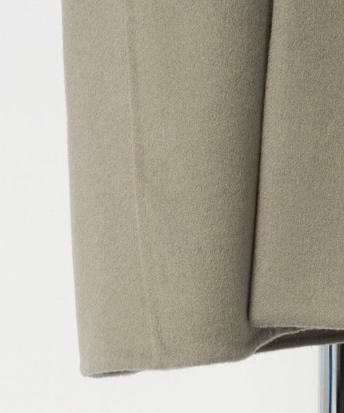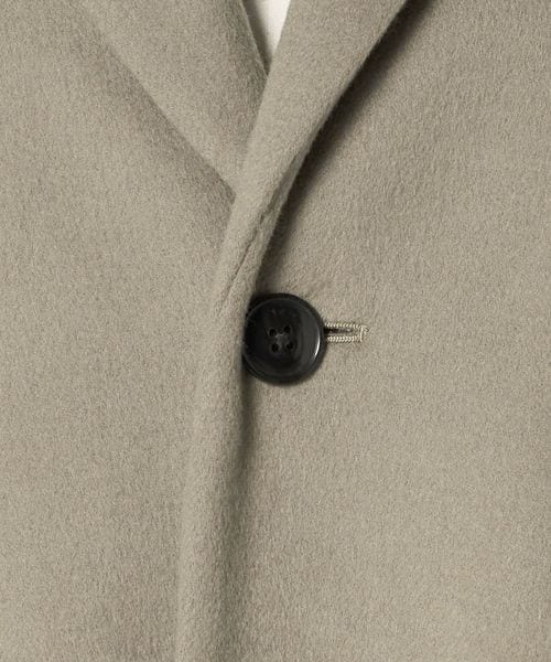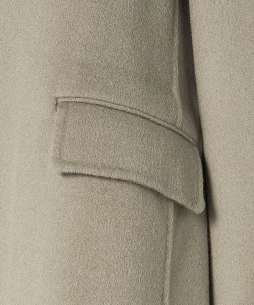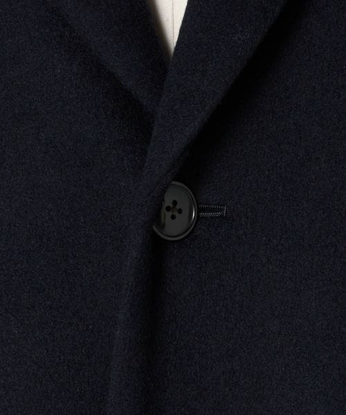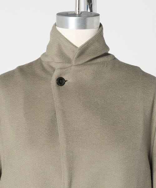 テーラードカラーがクラシックなチェスターコートのような雰囲気を添え、襟元を立てて着ることでよりモードな表情も楽しめます。