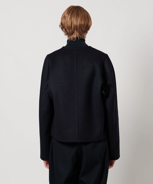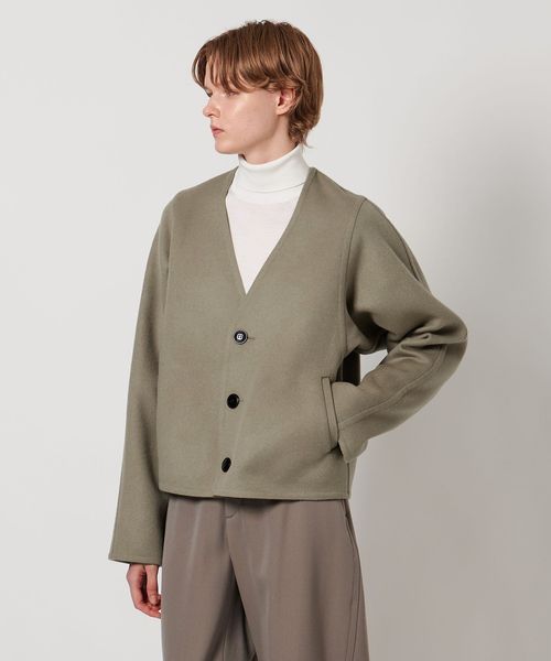 軽やかに羽織れる、カーディガン感覚のノーカラージャケット