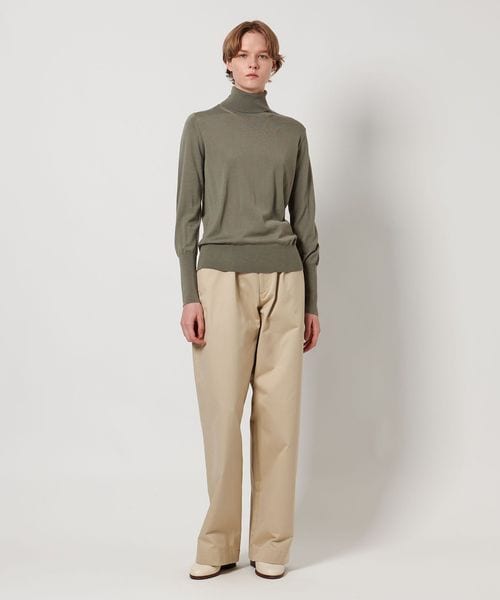 袖口には長めのリブを施し、たくし上げた際にもニュアンスのある表情が生まれるデザインが魅力です。
