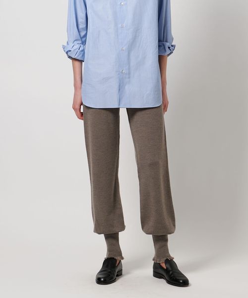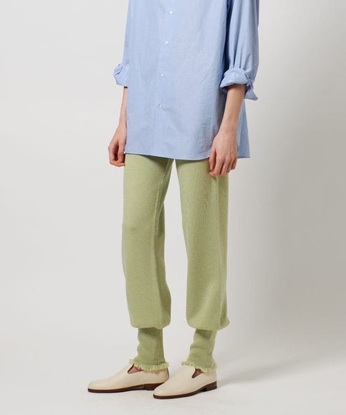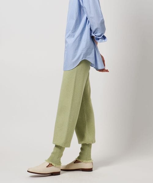 裾リブとフリンジがポイントのニットパンツ