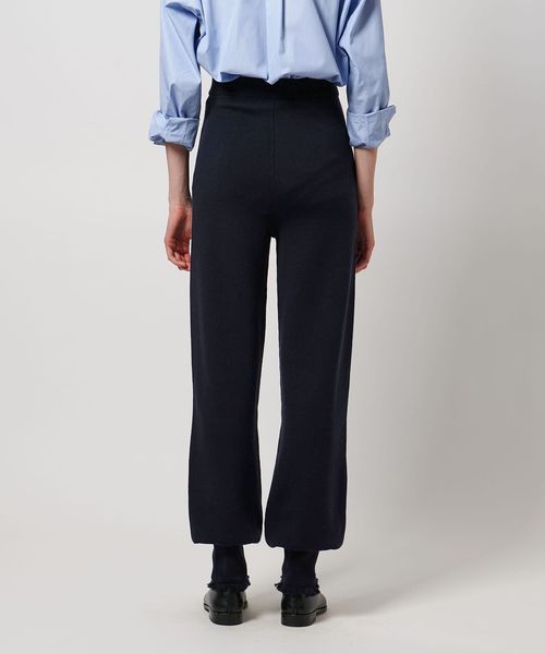 ソフトでクリアな表情のウール梳毛糸で編み立てたニットパンツ。