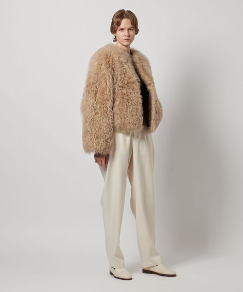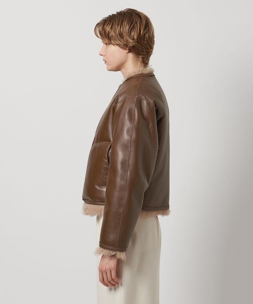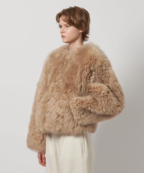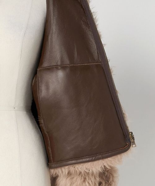 ワイルドなカーリーヘアの毛足が印象的な表面と、ナッパ仕上げの滑らかな裏面。