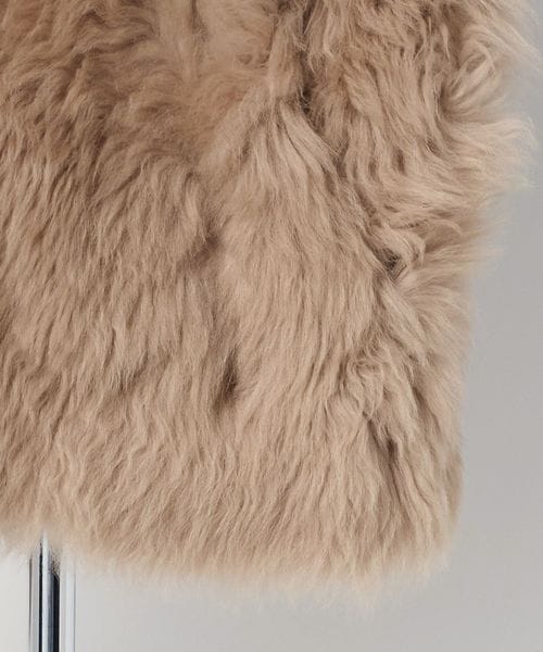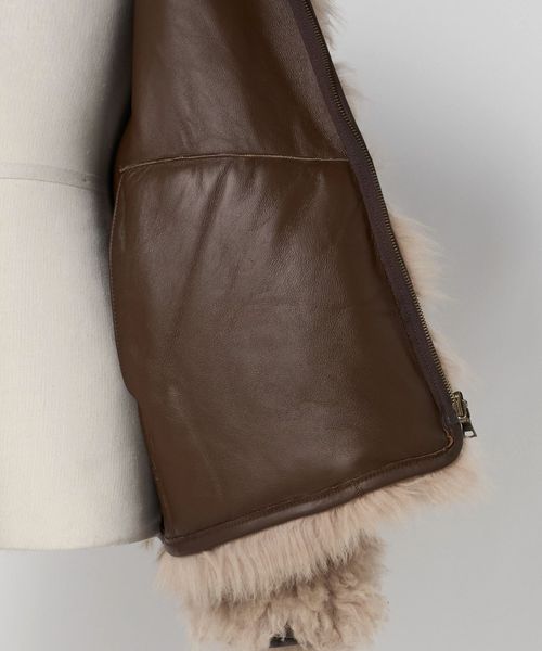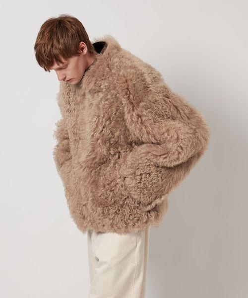 ワイルドなカーリーヘアの毛足が印象的な表面と、ナッパ仕上げの滑らかな裏面。