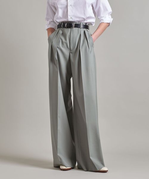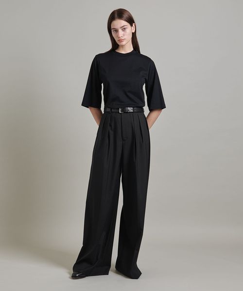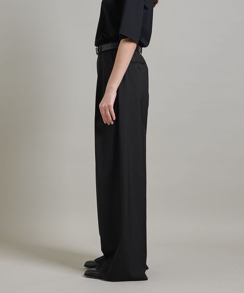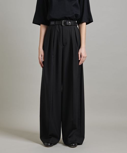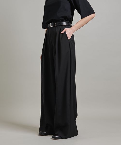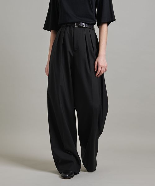ヒップから裾にかけて真っすぐに落ちるきれいなシルエットのバギーパンツは、たっぷりとした分量感が魅力です。