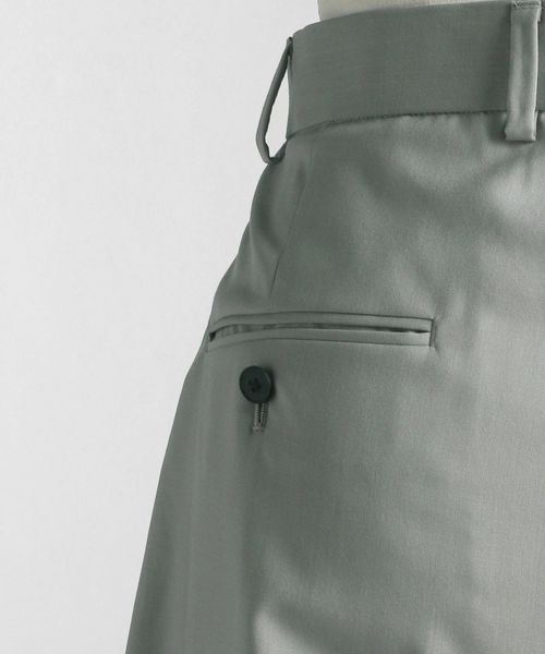 軽やかでドレープ感もあるサラッとしたタッチの素材にペーパープレス加工で艶感をプラスした梳毛素材。