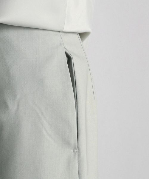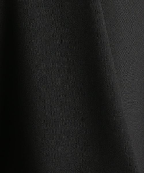 軽やかでドレープ感もあるサラッとしたタッチの素材にペーパープレス加工で艶感をプラスした梳毛素材。
