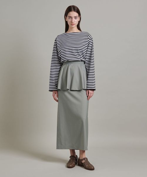 カジュアルなボーダーカットソーや、フィットシルエットのニットやTシャツなどさまざまなトップスと好相性。