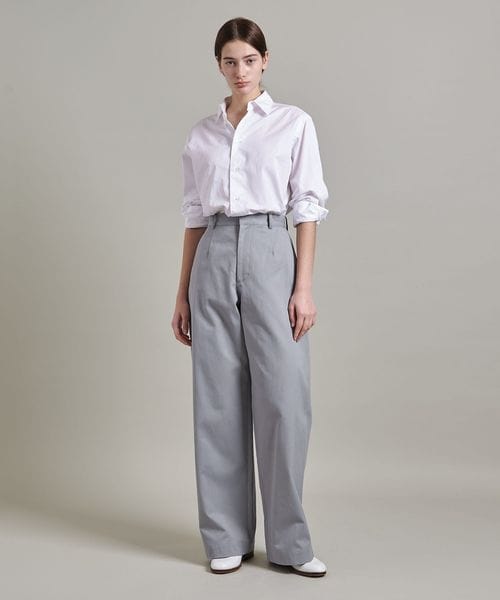 ワークウェアのようなきれいなシルバーグレーの色目はさまざまなカラーと相性が良く、カラーコーディネートに活躍するアイテムです。