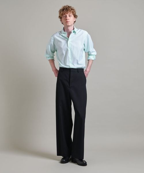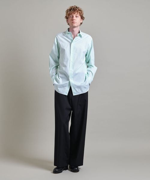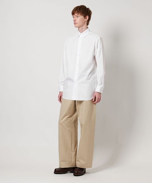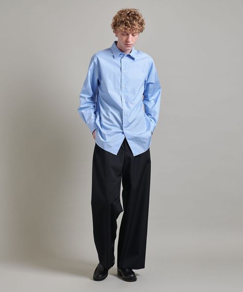 <LOEFF>定番のボンタンパンツはもちろん、ワイドパンツやデニムなどにさらりと合わせるだけで、洗練された大人のシャツスタイルをお楽しみいただけます。