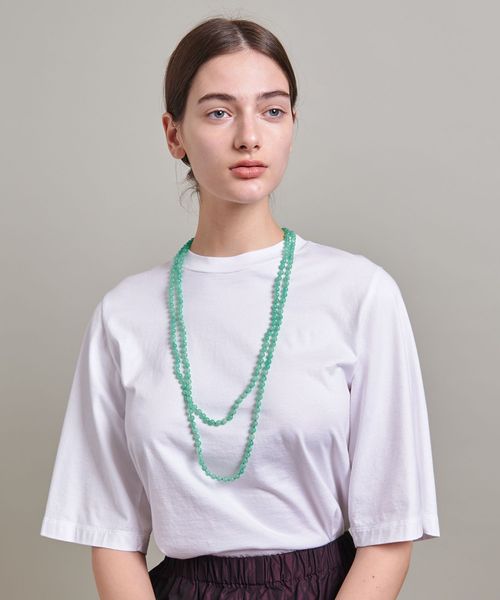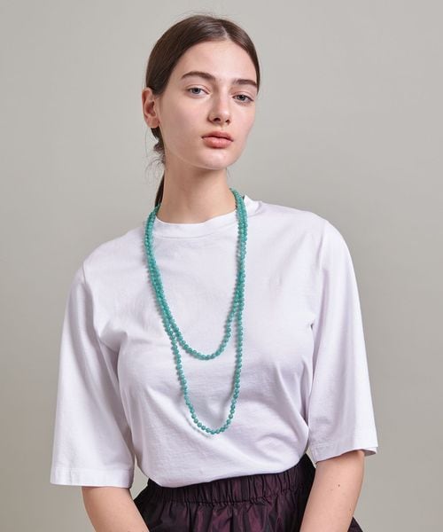 顔周りを華やかに彩るアマゾナイトロングネックレス