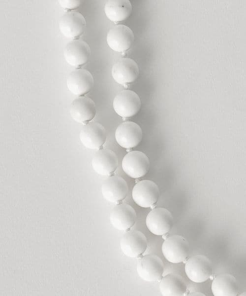 オール・ノットによるロングデザインで、長めにつけたり2重巻きにしたりとアレンジの利く長さがポイント。