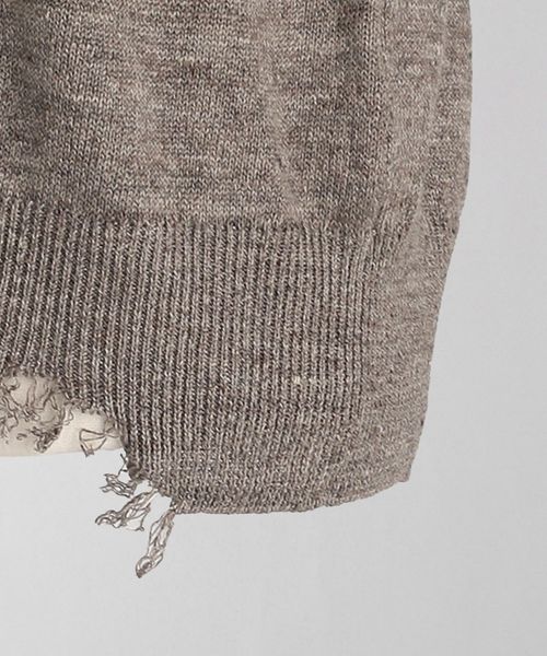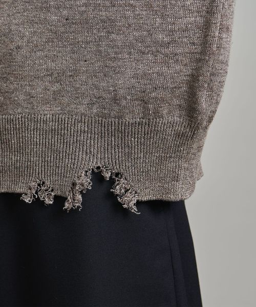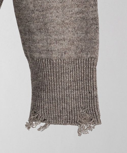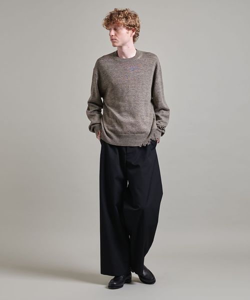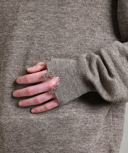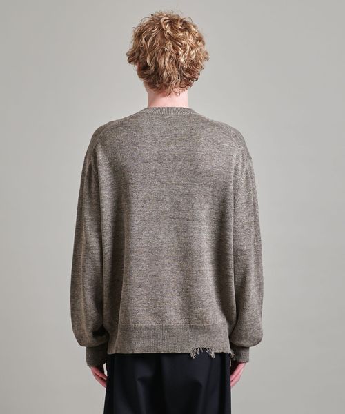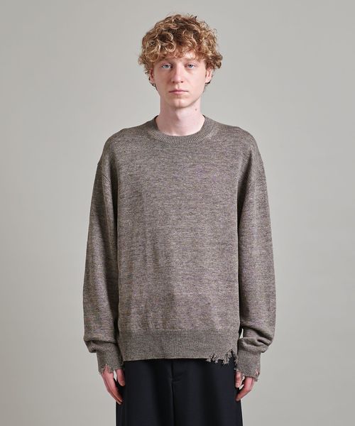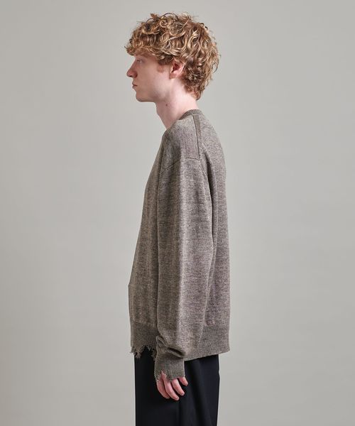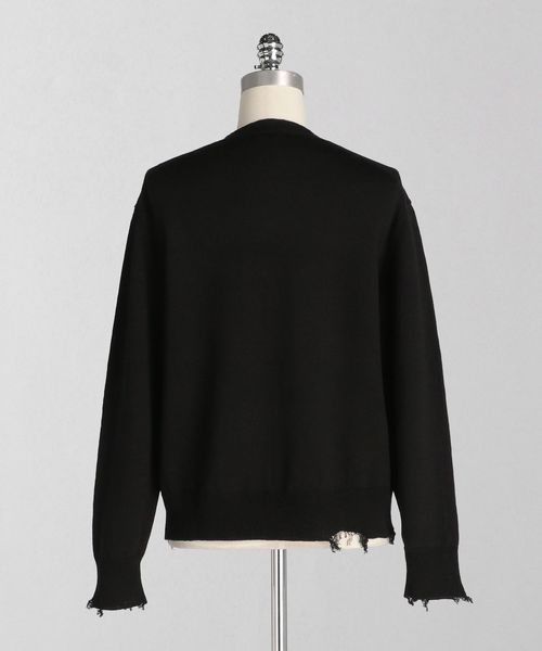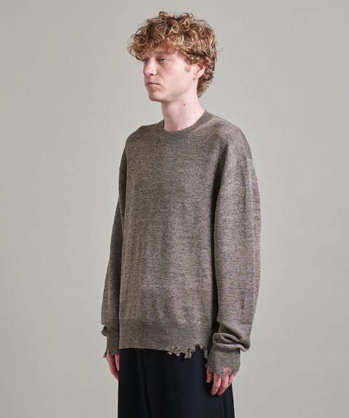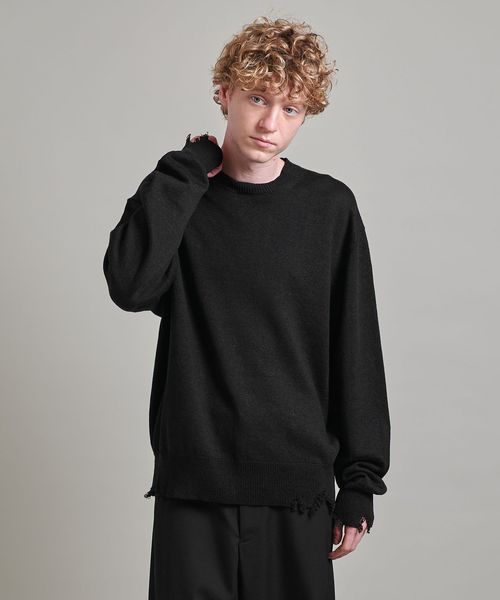 程よいダメージデザインに遊び心感じるクルーネックニット