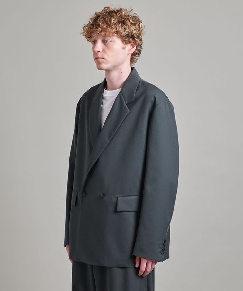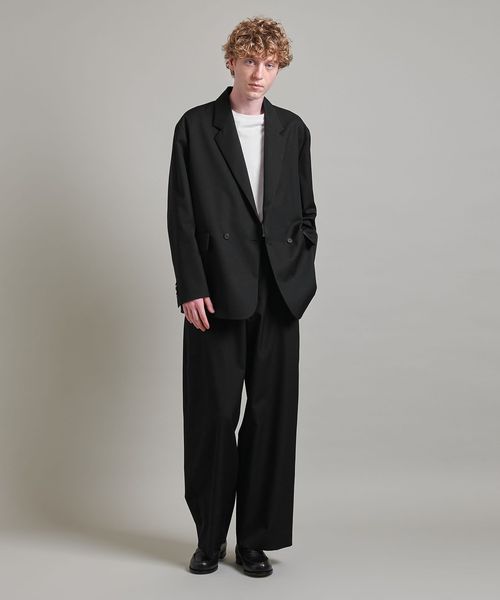 Wフロントでゆったりとしたボックスシルエットのジャケットは、抜け感もありつつシャープな印象でかっちりし過ぎないのがポイントです。