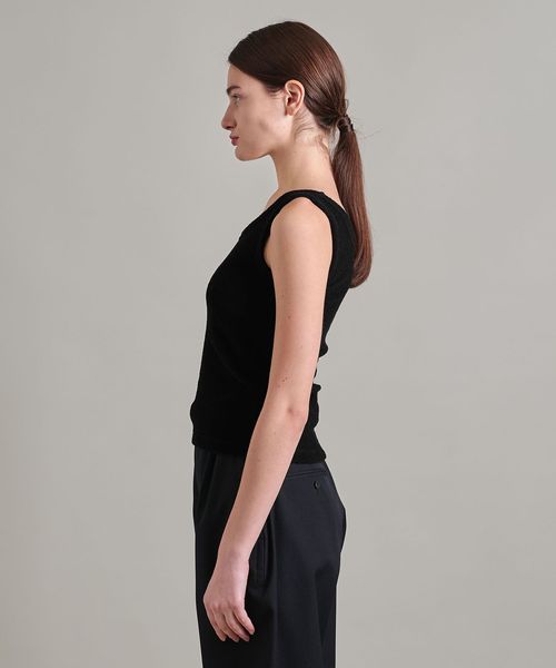 素材の表情感もあり、スポーティかつシックな印象も感じさせるタンクトップです。