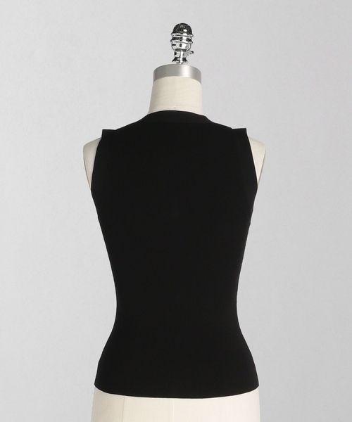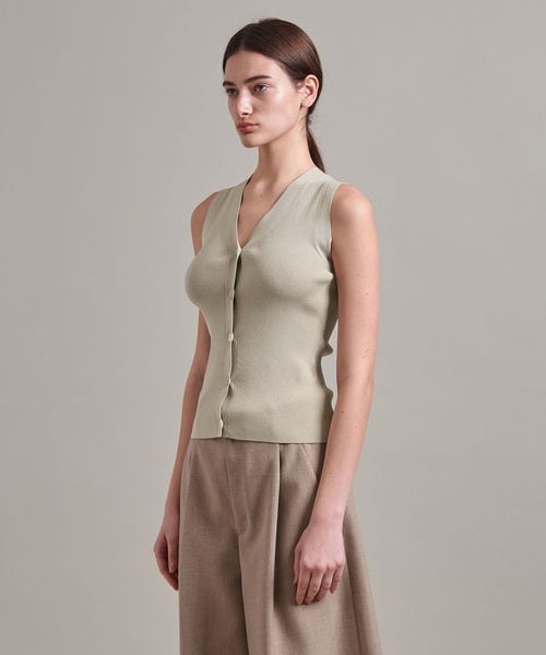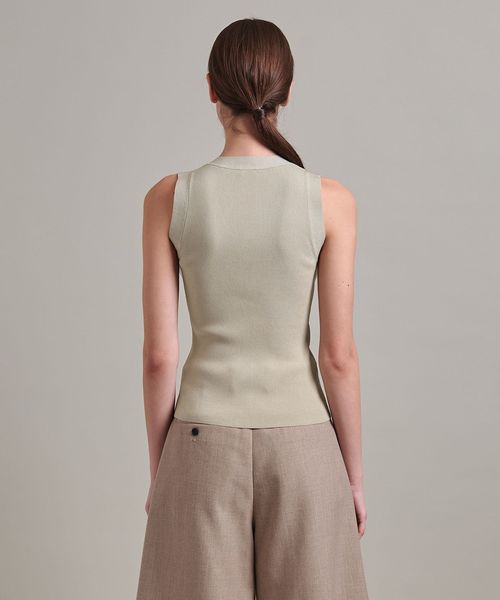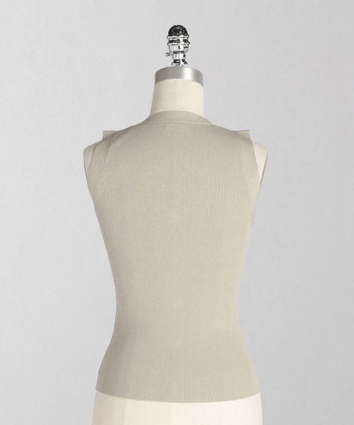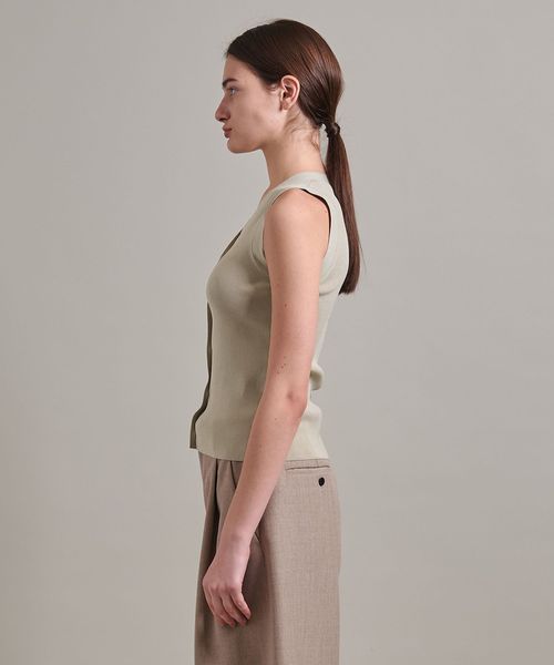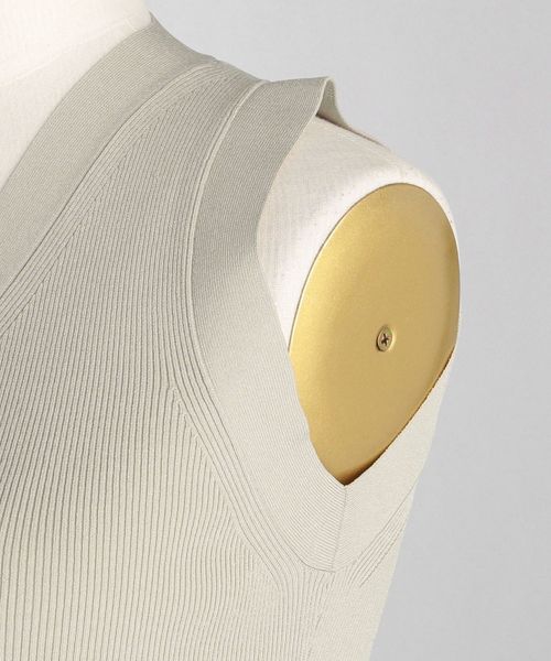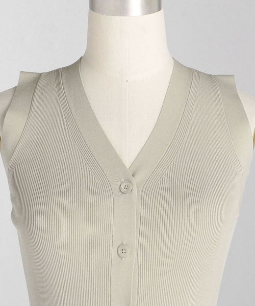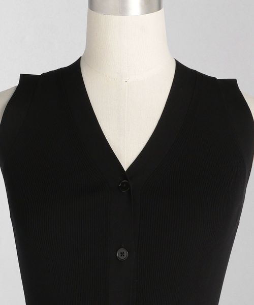 Vネック開きのベストのようなデザインのリブニット。