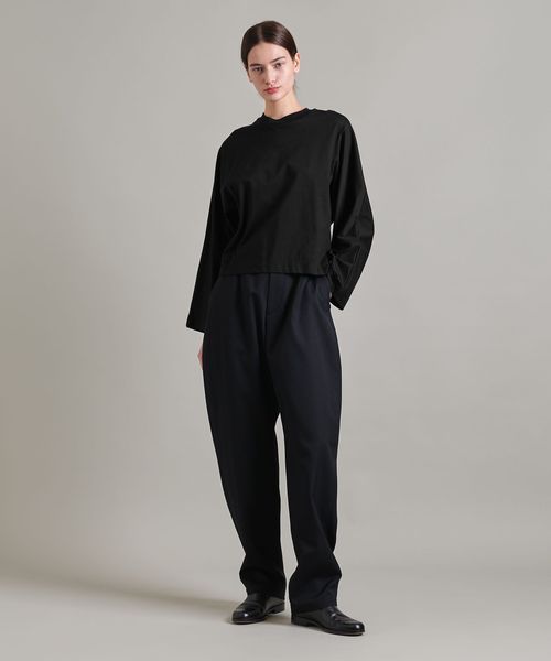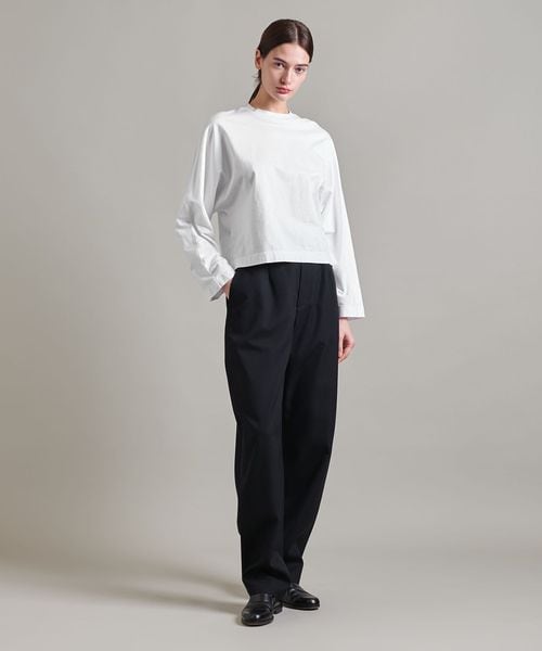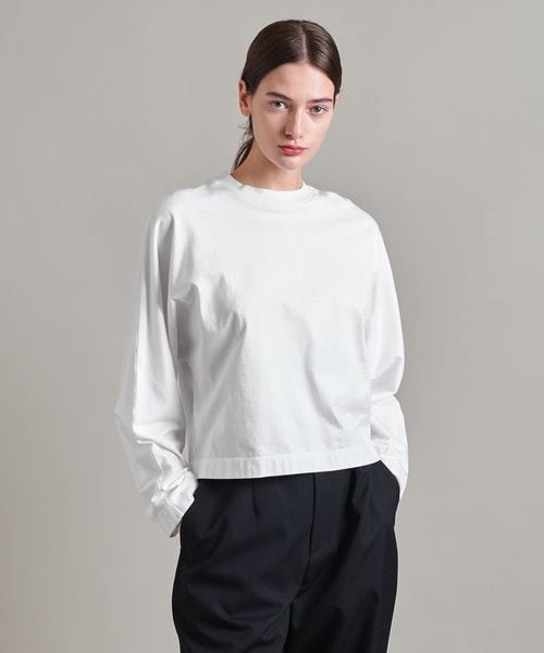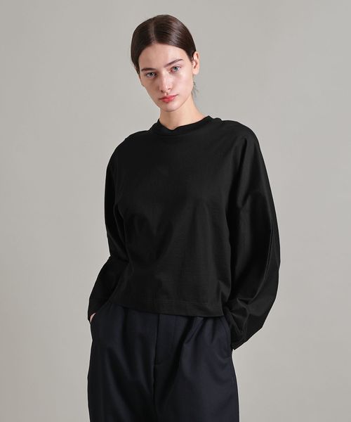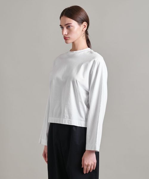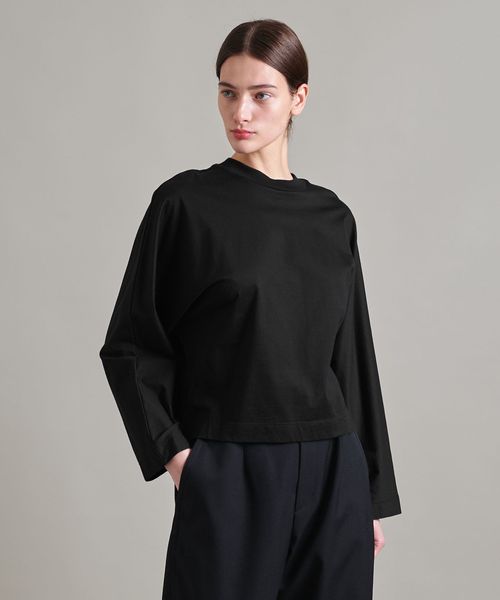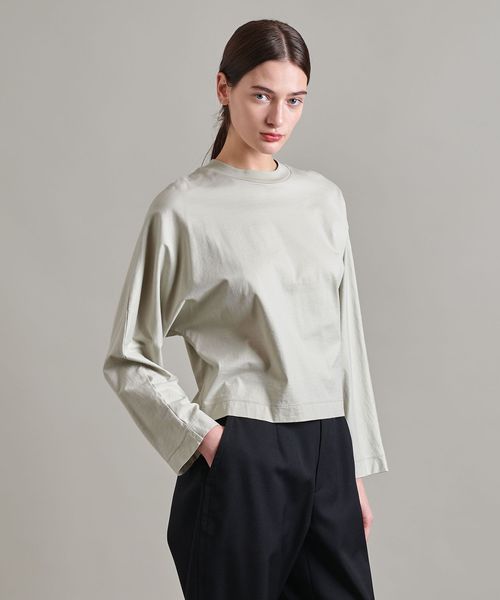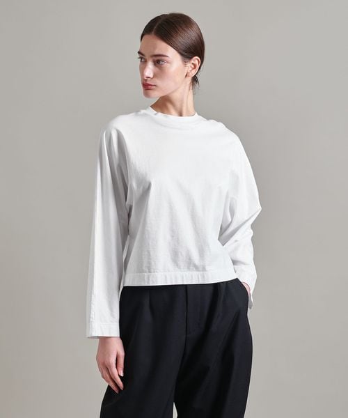 程よくゆったりとしたシルエットで、袖切り替えのないドルマンスリーブのロングスリーブTシャツ。