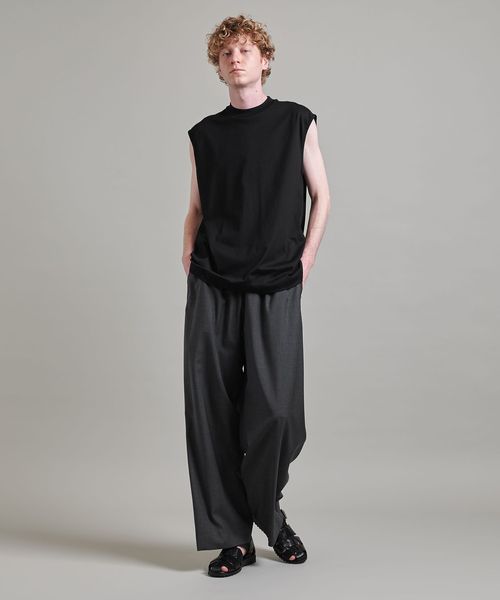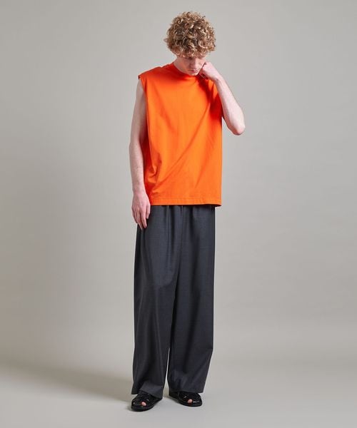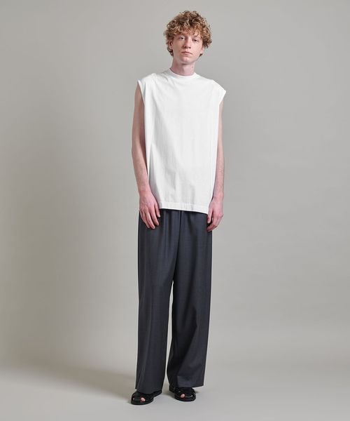 きれいめな印象で仕上げたノースリーブTシャツです。