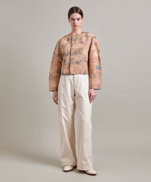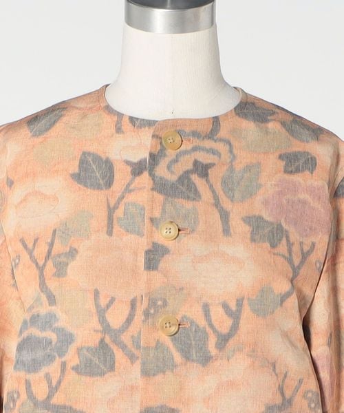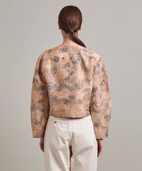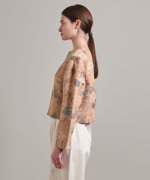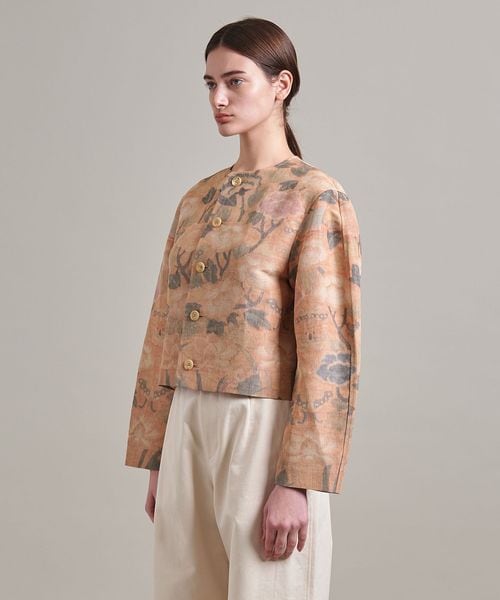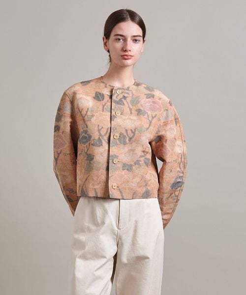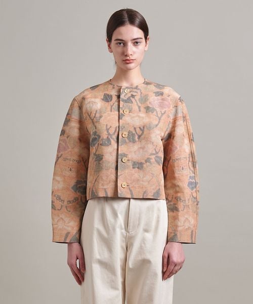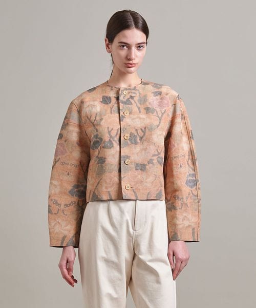 カーディガンライクな丸いシルエットがポイントのノーカラージャケット。