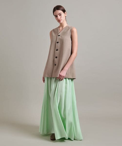 シンプルなTシャツやサマーニット合わせはもちろん、ベストを合わせたトレンド感のある着こなしもおすすめ。