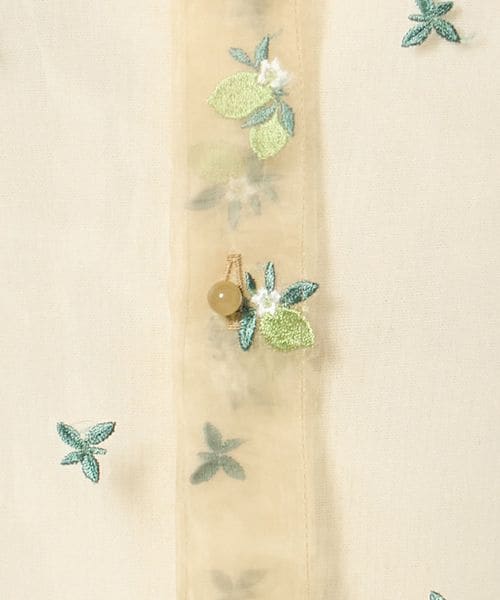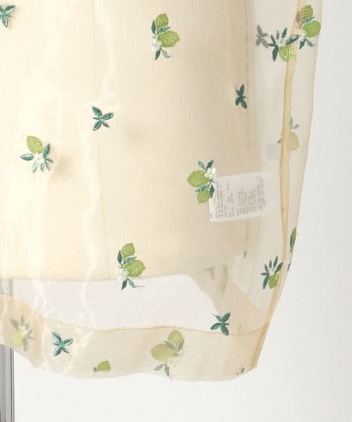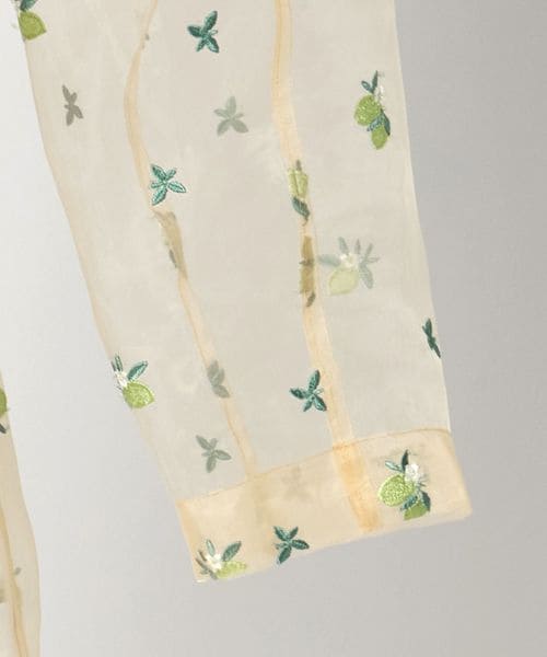 透明感が魅力のグラスオーガンジーにライムとミントのモヒート柄を刺繍した、<LOEFF>オリジナルのエンブロイダリーファブリック。