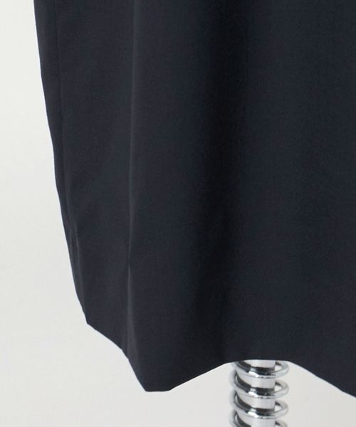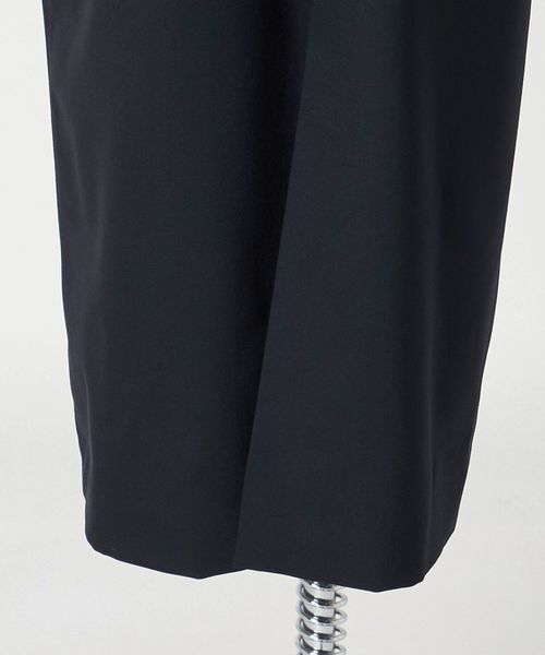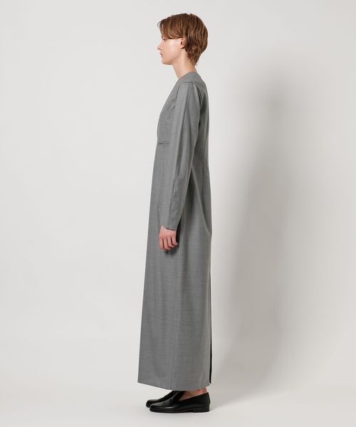 胸元の美しいカッティングとウエストポケットがアクセントになった、すっきりとしたIラインシルエットのミニマルなドレス。