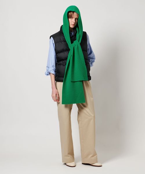フード付きのデザインが、首元をしっかり包み込みながら、コーディネートのアクセントにもなる一枚です。