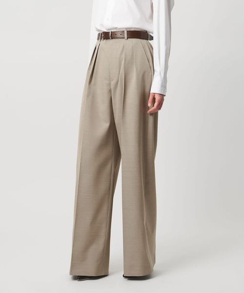 ヒップから裾にかけてズドンと真っすぐに落ちるきれいなシルエットのバギーパンツは、たっぷりとした分量感が魅力です。