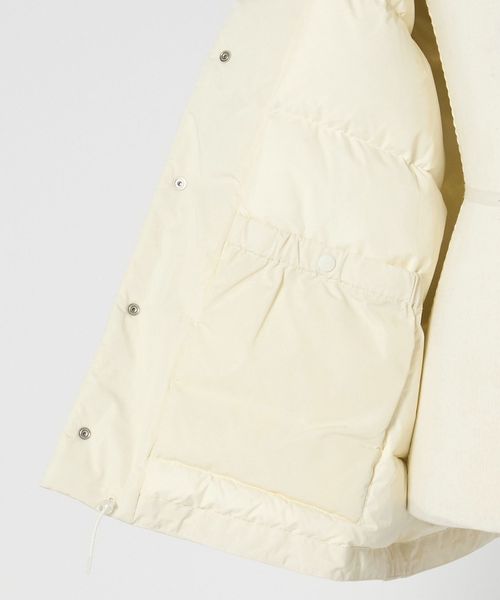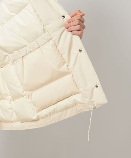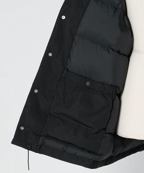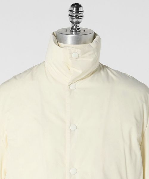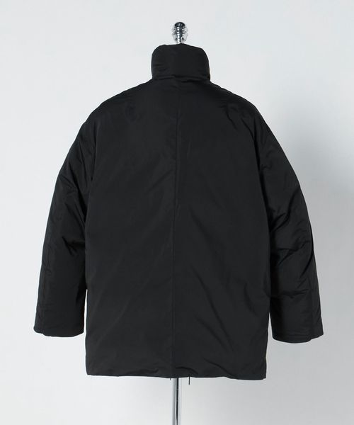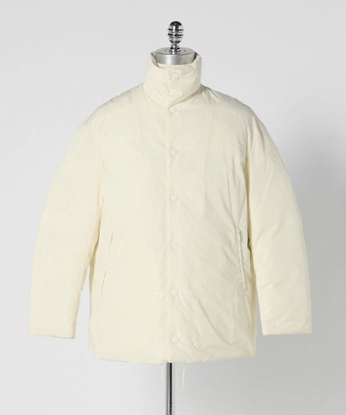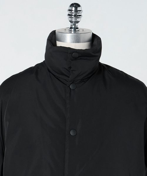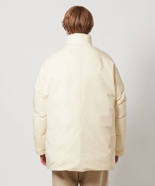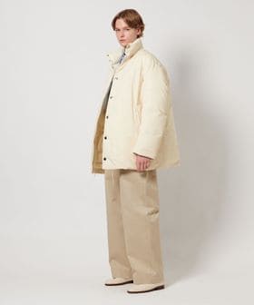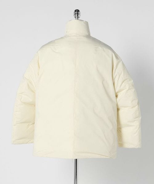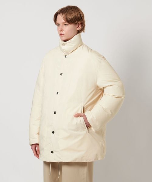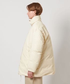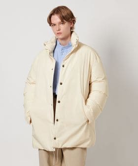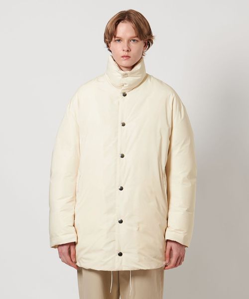 オーバーサイズ気味のスタンドカラーダウンコート。